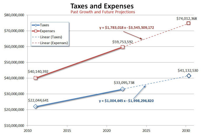 That’s a 24.3% increase in taxes and a 23.9% increase in expenses from 2022.