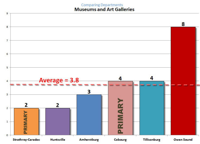 The most alarming example of overstaffing however, is the staffing of the Art Gallery shown below in figure 22 which has twice the workforce as the average of the primary comparator municipalities. It’s noteworthy that the Owen Sound Org Chart at Annex E43 shows 8 staff working at the Gallery. Yet, the 2023 Budget Book 49 shows only six employees working at the Art Gallery.