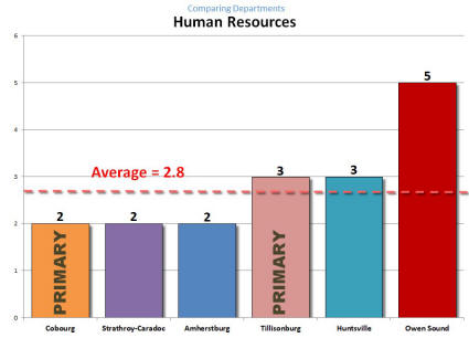 There are discrepancies between Organization Charts that Owen Sound provided for this study and the 2021 Financial Information Report which makes it difficult to identify all of the sources for the overstaffing shown in figure 20. However, figures 29 to 31 show a few examples. For example Owen Sound is the only municipality in the study group employing two Human Resources managers and the only municipality with an HR Team of 5 employees. Owen Sound is also the only municipality employing three managers in the clerk’s office – see Annex B. As well Owen Sound is the only municipality employing both a Director and a Manager of Corporate Services in addition to a Deputy Treasurer.